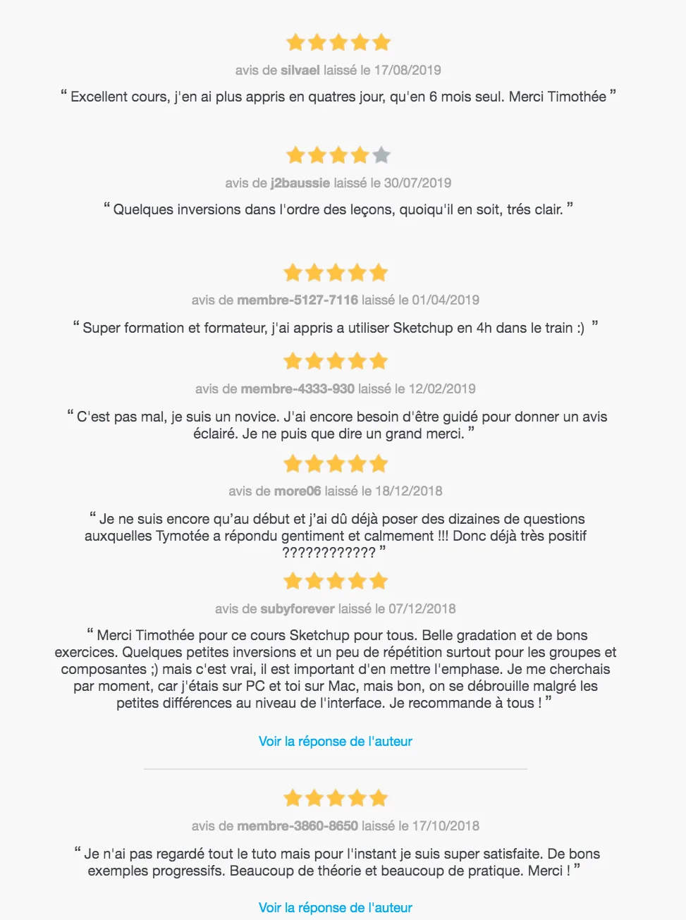 7340 étudiants ont suivi mes cours en ligne. Ma note moyenne est de 4,8/5 sur 277 avis. La chaîne Youtube atteint les 28 000 abonnés.