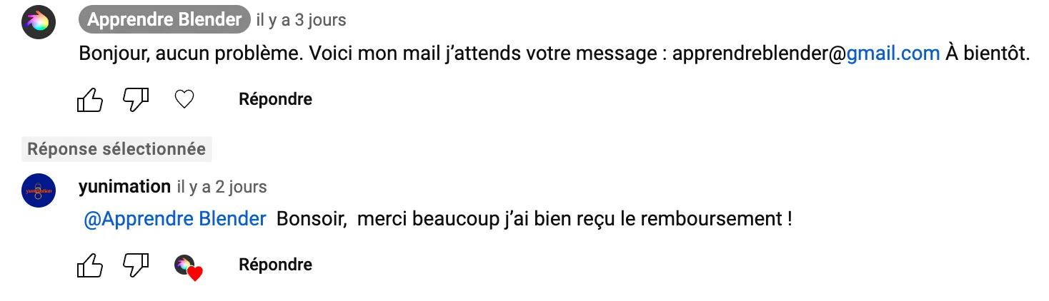 J'enseigne en ligne depuis 2017, je n'ai jamais eu un seul commentaire d'un client non remboursé.